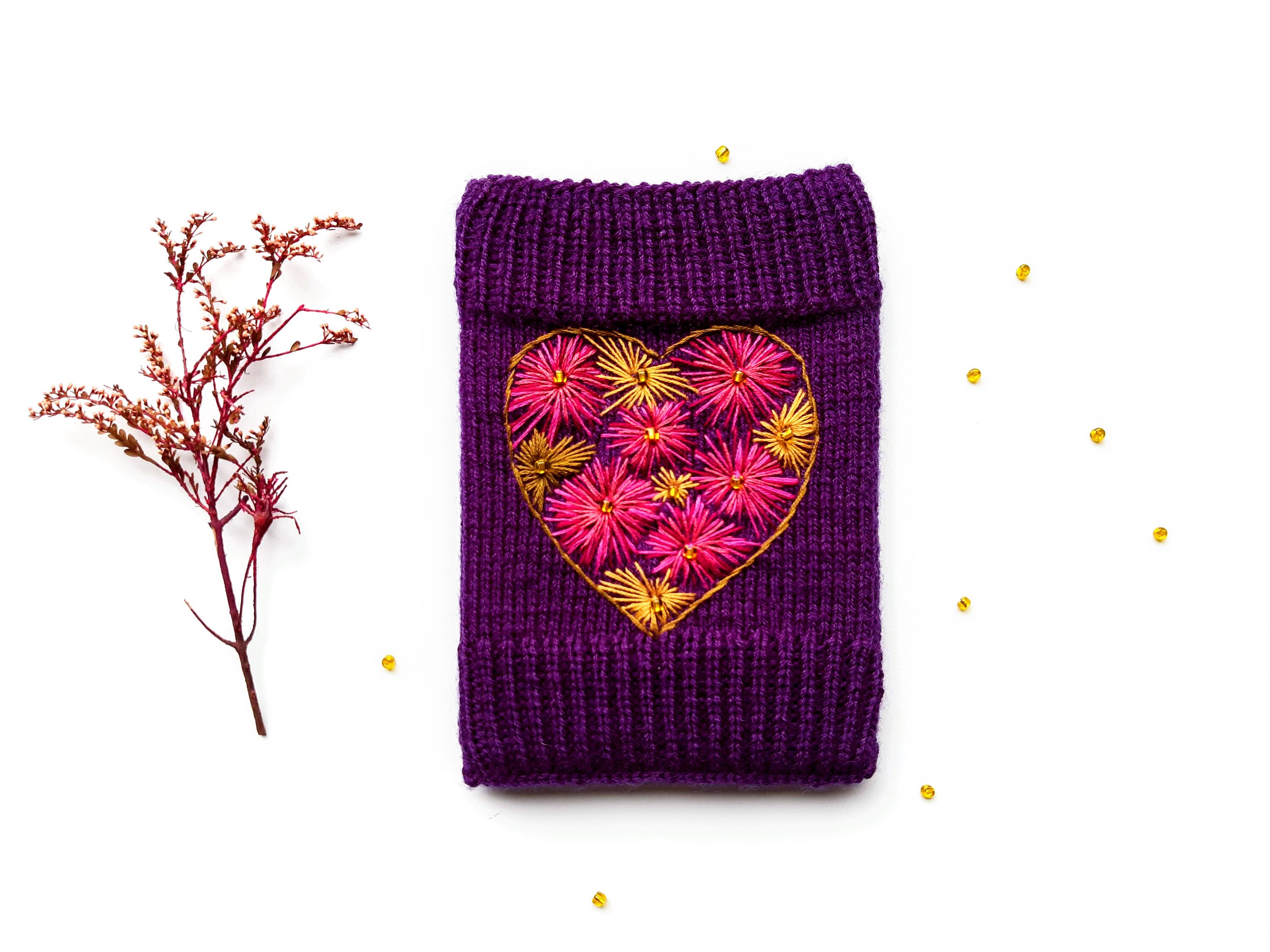 Floral Embroidered Ebook Case Purple Knitted Kindle Book Etsy Australia